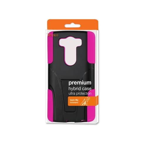 REIKO LG V10 HYBRID HEAVY DUTY CASE WITH KICKSTAND IN HOT PINK BLACK