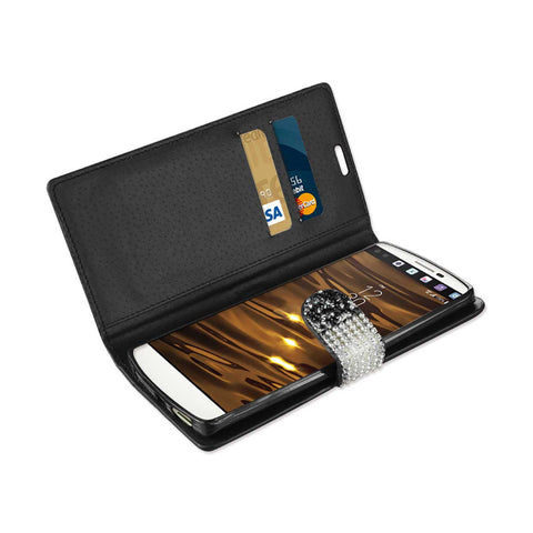 REIKO LG V10 JEWELRY RHINESTONE WALLET CASE IN BLACK