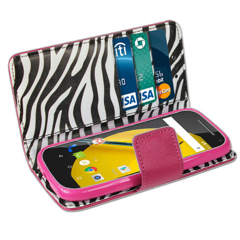 REIKO MOTOROLA MOTO E (2015) 3-IN-1 INTERIOR ZEBRA PATTERN WALLET CASE IN HOT PINK