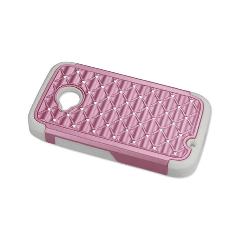 REIKO MOTOROLA MOTO E (2015) HYBRID HEAVY DUTY JEWELRY DIAMOND CASE IN WHITE PINK