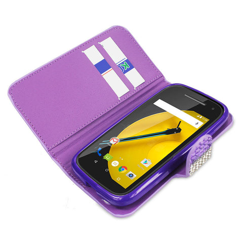 REIKO MOTOROLA MOTO E (2015) JEWELRY DIAMOND RHINESTONE WALLET CASE IN SILVER