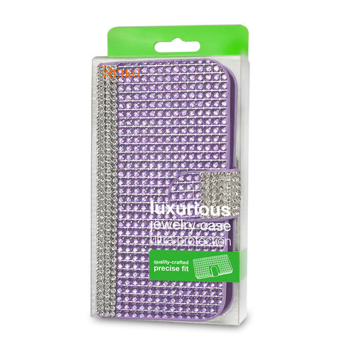 Beautiful full cover diamond wallet case. Built In compartment to store your cash money. Three side pockets for credit cards, business cards and other daily "must-have" items. Secure magnetic flap to keep case closed and your phone scratch-free.