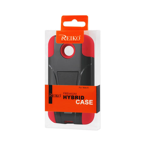 REIKO MOTOROLA MOTO E HYBRID HEAVY DUTY CASE WITH KICKSTAND IN RED BLACK