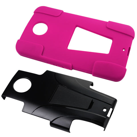 REIKO MOTOROLA NEXUS 6 HYBRID HEAVY DUTY CASE WITH KICKSTAND IN HOT PINK BLACK