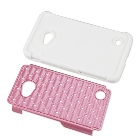 REIKO NOKIA LUMIA 640 HYBRID HEAVY DUTY JEWELRY DIAMOND CASE IN WHITE PINK