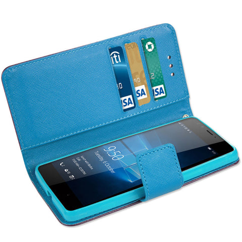 Three side pockets for credit cards, business cards and other daily "must-have" items. The free stand function makes you watch videos or pictures In an easy way. Secure magnetic flap to keep case closed and your phone scratch-free. Able to fit In pouches, bags or any other small pocket spaces. Quality-crafted for precise fit and easy operation. Made with synthetic leather exterior with a soft, microfiber interior for drop and shock protection. Complete and stylish protection with full access to all ports, buttons, and camera. This phone model is also known as Nokia Lumia 950/ Microsoft Lumia 950 Dual.