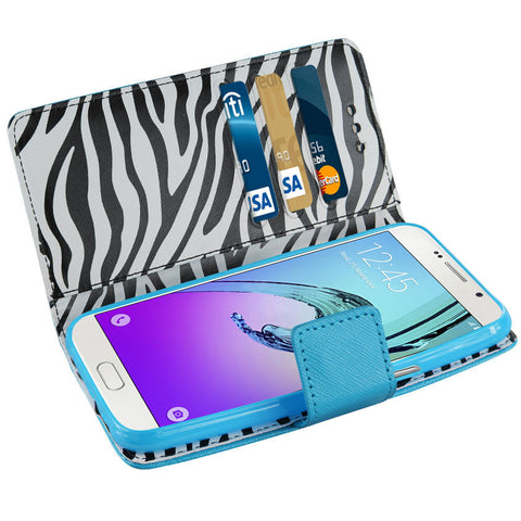 REIKO SAMSUNG GALAXY A7 (2016) 3-IN-1 WALLET CASE WITH INNER ZEBRA PRINT IN BLUE