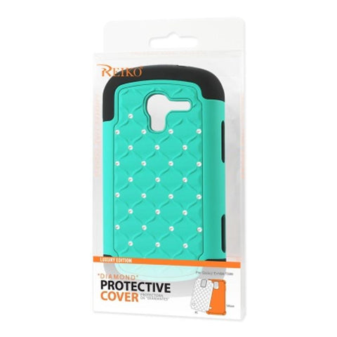 Heavy-duty construction jewelry case. Droproof and shockproof. Anti-shock and anti-slip grip design. Durable design with front raised edges to protect your mobile device and touchscreen. Easy installation and removal. Carry your mobile device In confidence. Diamond studs design for a seamless luxurious look. This phone model is also known as Samsung Galaxy Exhibit T599.
