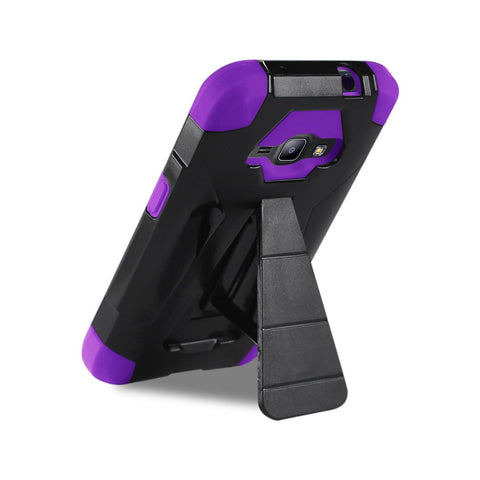 REIKO SAMSUNG GALAXY J1 (2016) HYBRID HEAVY DUTY CASE WITH KICKSTAND IN PURPLE BLACK