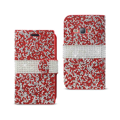 REIKO SAMSUNG GALAXY J1 (2016) JEWELRY RHINESTONE WALLET CASE IN RED