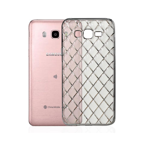 REIKO SAMSUNG GALAXY J7 FLEXIBLE 3D RHOMBUS PATTERN TPU CASE WITH SHINY FRAME IN CLEAR