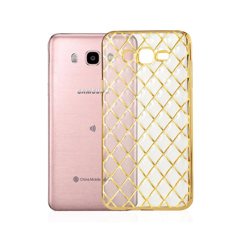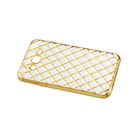 REIKO SAMSUNG GALAXY J7 FLEXIBLE 3D RHOMBUS PATTERN TPU CASE WITH SHINY FRAME IN GOLD