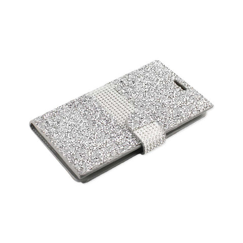 REIKO SAMSUNG GALAXY J7 JEWELRY RHINESTONE WALLET CASE IN SILVER