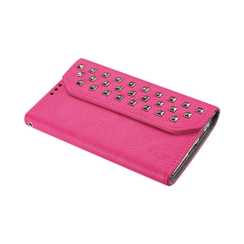 REIKO SAMSUNG GALAXY NOTE 3 STUDS WALLET CASE IN HOT PINK
