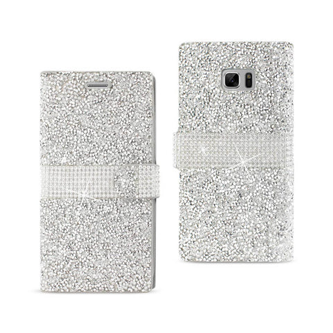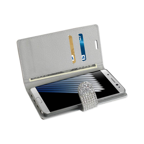 REIKO SAMSUNG GALAXY NOTE 7 JEWELRY RHINESTONE WALLET CASE IN SILVER