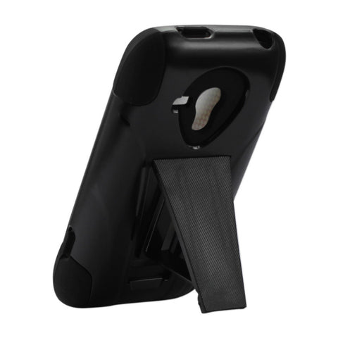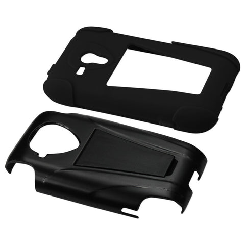 Constructed from impact-resistant material and double-enforced with a shock absorbing silicone inner-sleeve. Built In vertical kickstand. Heavy duty design with front raised edges to protect your mobile device and touchscreen. Protects your phone under extreme conditions and a host of other environmental factors great dropproof and shockpoorf protection. This phone model is also known as Samsung Galaxy Rush M830.