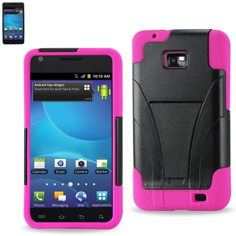 REIKO SAMSUNG GALAXY S2 HYBRID HEAVY DUTY CASE WITH KICKSTAND IN HOT PINK BLACK