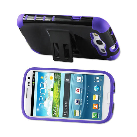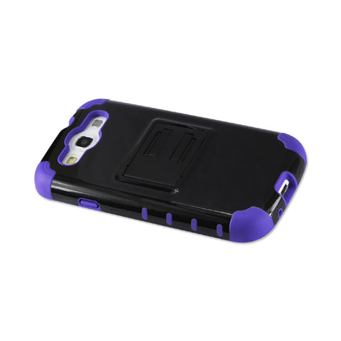 REIKO SAMSUNG GALAXY S3 HYBRID HEAVY DUTY CASE WITH HORIZONTAL KICKSTAND IN BLACK PURPLE