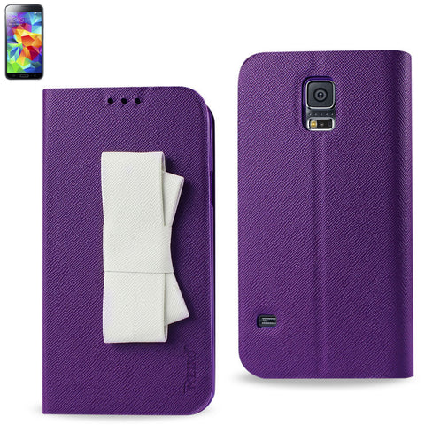 REIKO SAMSUNG GALAXY S5 FLIP FOLIO BOW WALLET CASE IN PURPLE WHITE