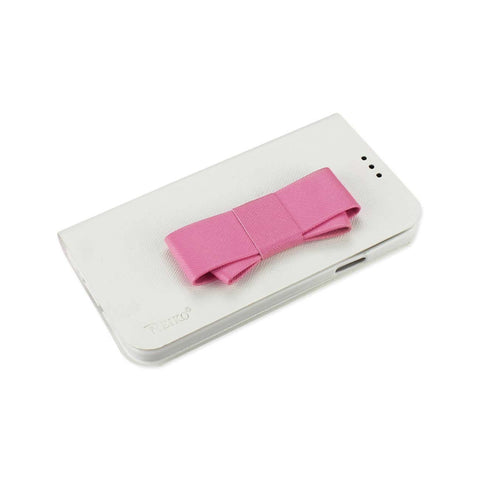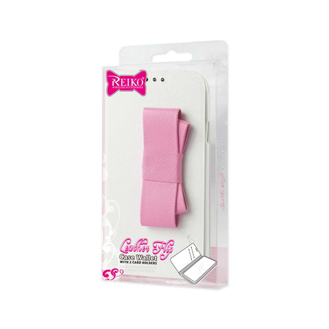 REIKO SAMSUNG GALAXY S5 FLIP FOLIO BOW WALLET CASE IN WHITE PINK