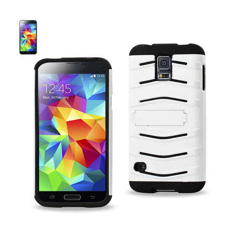 REIKO SAMSUNG GALAXY S5 HYBRID FISHBONE CASE WITH KICKSTAND IN BLACK WHITE