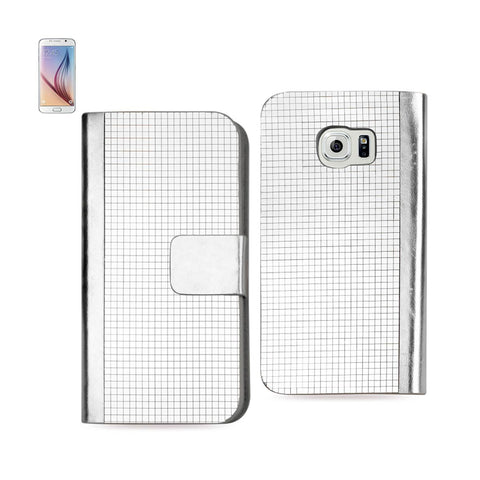 REIKO SAMSUNG GALAXY S6 GOLD CHROME DESIGN WALLET CASE IN SILVER