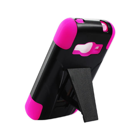 REIKO ZTE CONCORD 2 HYBRID HEAVY DUTY CASE WITH KICKSTAND IN HOT PINK BLACK