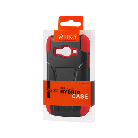 REIKO ZTE CONCORD 2 HYBRID HEAVY DUTY CASE WITH KICKSTAND IN RED BLACK