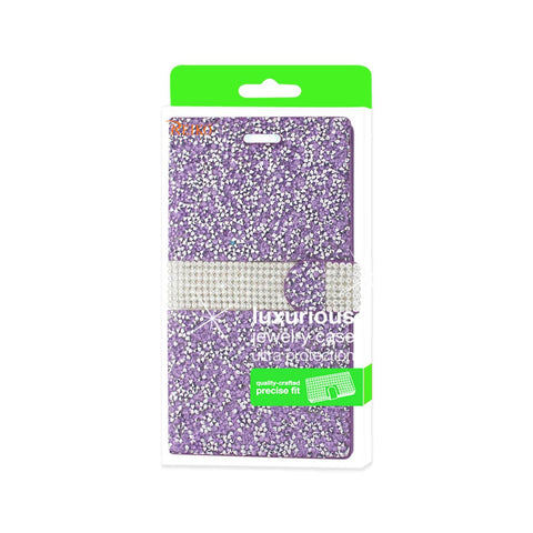 REIKO ZTE GRAND X MAX 2 JEWELRY RHINESTONE WALLET CASE IN PURPLE