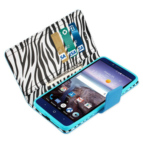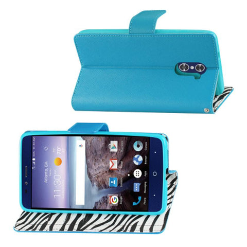 REIKO ZTE GRAND X MAX 2 WALLET CASE WITH INNER ZEBRA PRINT IN BLUE