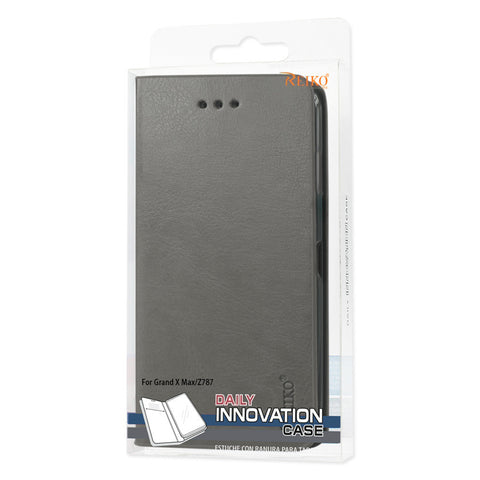 REIKO ZTE GRAND X MAX FLIP FOLIO CASE WITH CARD HOLDER IN GRAY