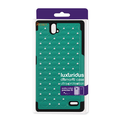 REIKO ZTE GRAND X MAX HYBRID HEAVY DUTY JEWELRY DIAMOND CASE IN BLACK GREEN