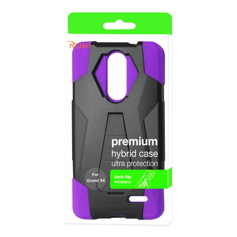 REIKO ZTE GRAND X4 HYBRID HEAVY DUTY CASE WITH KICKSTAND IN PURPLE BLACK