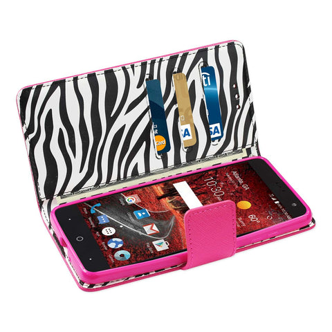 REIKO ZTE GRAND X4 WALLET CASE WITH INNER ZEBRA PRINT IN HOT PINK