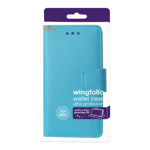 REIKO ZTE MAVEN 2/ CHAPEL/ AVID TRID (Z831) WALLET CASE WITH INNER ZEBRA PRINT IN BLUE