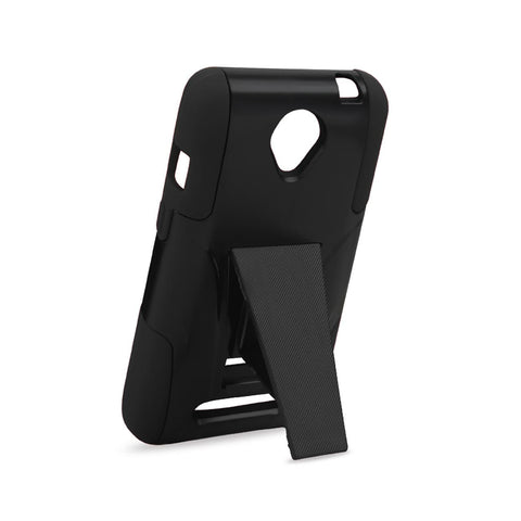 Constructed from impact-resistant material and double-enforced with a shock absorbing silicone inner-sleeve. Built In vertical kickstand. Heavy duty design with front raised edges to protect your mobile device and touchscreen. Protects your phone under extreme conditions and a host of other environmental factors great dropproof and shockpoorf protection. This phone model is also known as ZTE Obsidian Z820.