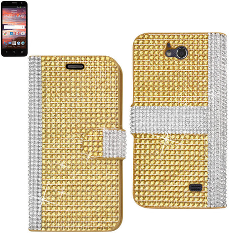 REIKO ZTE OVERTURE 2 JEWELRY DIAMOND RHINESTONE WALLET CASE IN GOLD