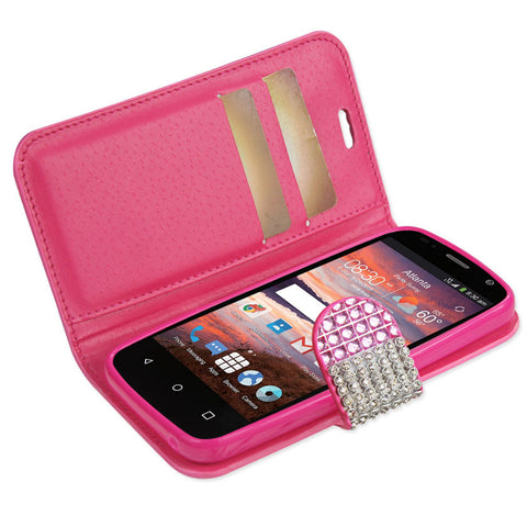 REIKO ZTE OVERTURE 2 JEWELRY DIAMOND RHINESTONE WALLET CASE IN PINK