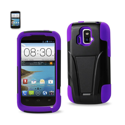 REIKO ZTE SONATA 4G HYBRID HEAVY DUTY CASE WITH KICKSTAND IN PURPLE BLACK
