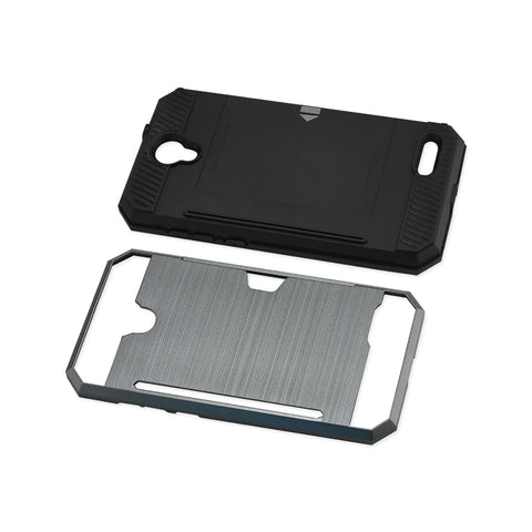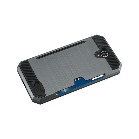 REIKO ZTE WARP 7/ Z959 SLIM ARMOR HYBRID CASE WITH CARD HOLDER IN GRAY
