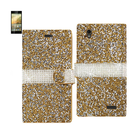 REIKO ZTE WARP ELITE JEWELRY RHINESTONE WALLET CASE IN GOLD