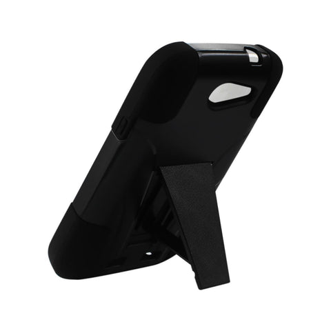 Constructed from impact-resistant material and double-enforced with a shock absorbing silicone inner-sleeve. Built In vertical kickstand. Heavy duty design with front raised edges to protect your mobile device and touchscreen. Protects your phone under extreme conditions and a host of other environmental factors great dropproof and shockpoorf protection. This phone model is also known as ZTE Warp Sync N9515.
