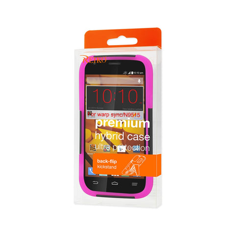 REIKO ZTE WARP SYNC HYBRID HEAVY DUTY CASE WITH KICKSTAND IN HOT PINK BLACK