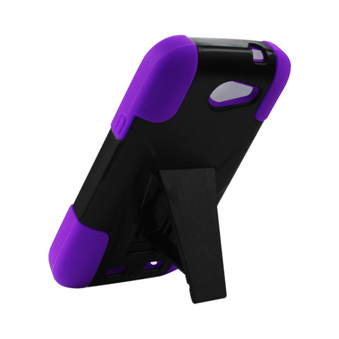 REIKO ZTE WARP SYNC HYBRID HEAVY DUTY CASE WITH KICKSTAND IN PURPLE BLACK