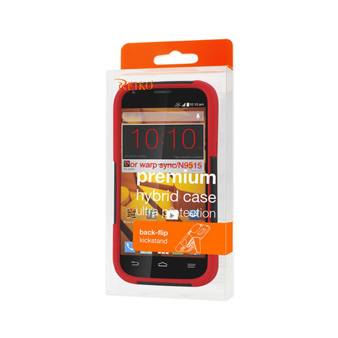 REIKO ZTE WARP SYNC HYBRID HEAVY DUTY CASE WITH KICKSTAND IN RED BLACK