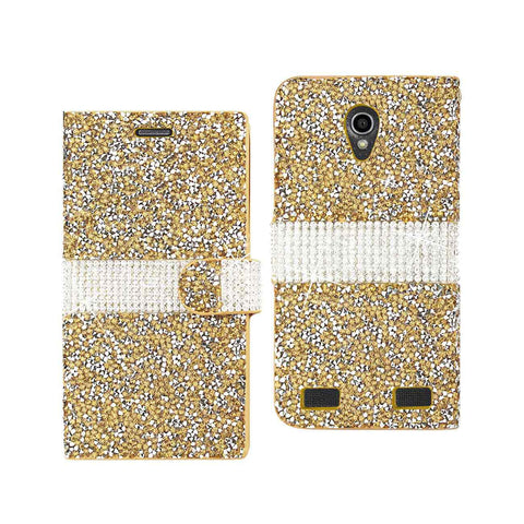 REIKO ZTE ZMAX 2 JEWELRY RHINESTONE WALLET CASE IN GOLD