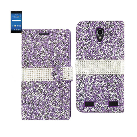REIKO ZTE ZMAX 2 JEWELRY RHINESTONE WALLET CASE IN PURPLE