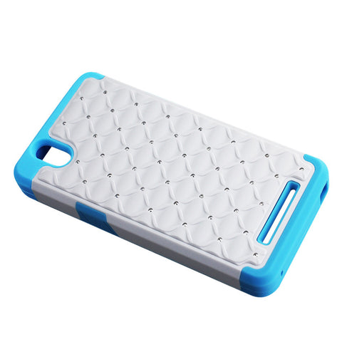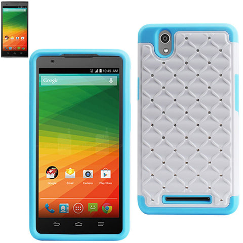 REIKO ZTE ZMAX HYBRID HEAVY DUTY JEWELRY DIAMOND CASE IN BLUE WHITE