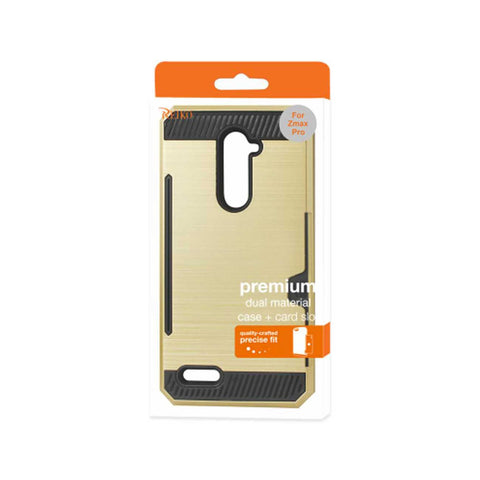 REIKO ZTE ZMAX PRO SLIM ARMOR HYBRID CASE WITH CARD HOLDER IN GOLD